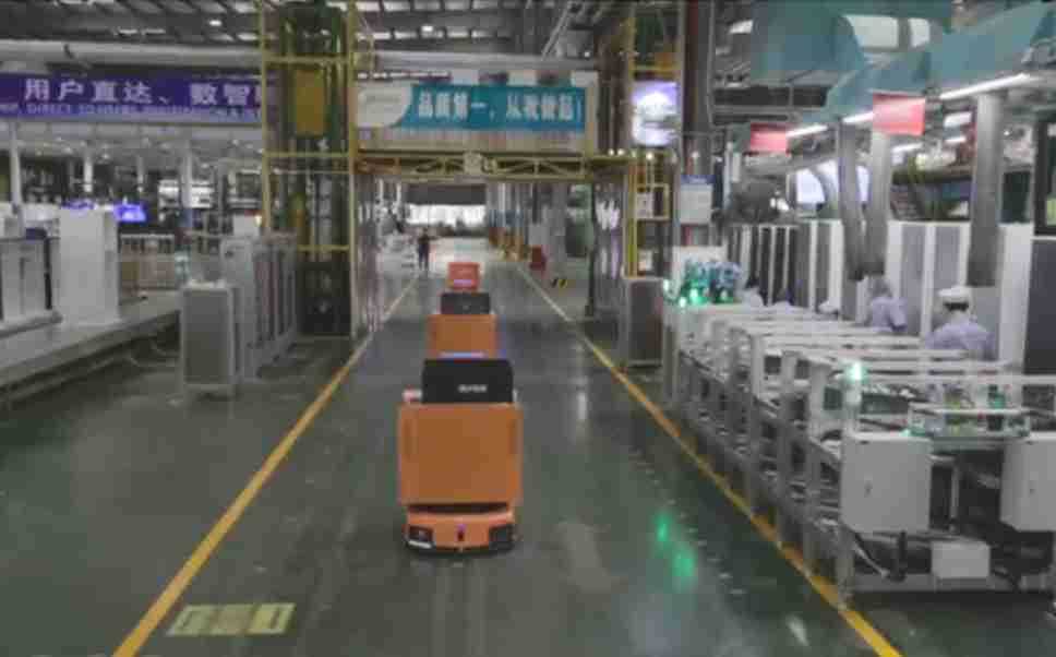 为车载冰箱物流配送打造的智能解决方案,,包含产中物流通过潜伏举升AMR搬运至线边,,,产后成品物流智能仓储,,,流程包含产中物流智能齐套入库,,,线边安灯叫料AMR智能配送至线边,,,成品入库、、、、出库,,通过无人堆高车机器人,,,,智能仓储管理替代人工作业管理,,,实现更高存储、、、更高效率、、更具柔性化的解决方案。。。。