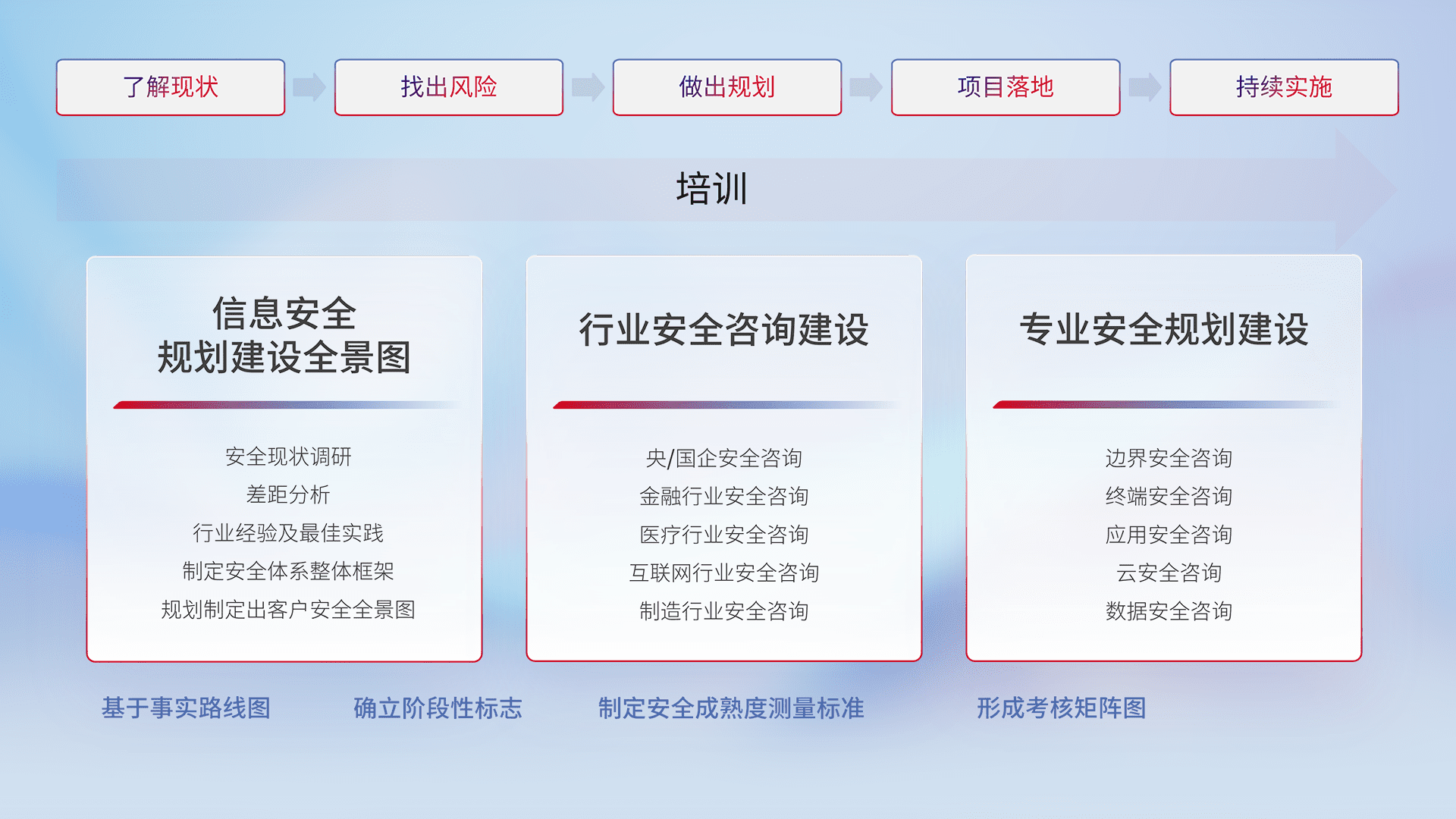 通过专业的法律咨询解读、、合规架构体现、、差异化解决方案、、测试实施支持等服务,,为客户量身打造等保合规体系。。。。